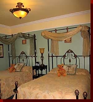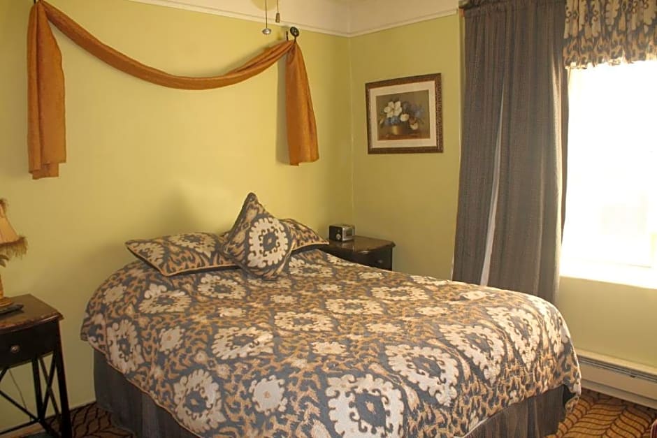 This room offers one queen bed, Victorian furnishings, velvet drapes and views of the city.