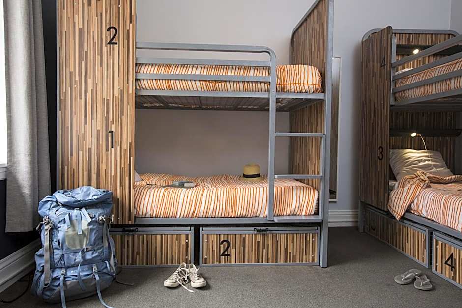 This room provides guests with access to a shared hallway bathroom. Towels and linens are provided. Spacious lockers are provided under each bed. USB and electrical charging points and reading lamps are provided for each person. There is a sink in every room.