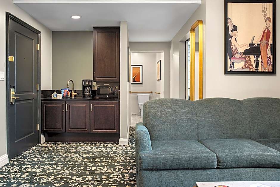 This deluxe suite includes a non-convertible sofa, a seating area, and a flat-screen TV. It also includes a coffee machine, a microwave and a refrigerator.
