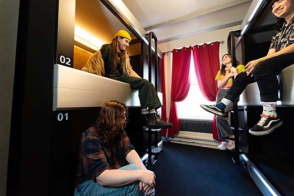 "Featuring free WiFi, this all-female dorm offers unique capsule beds with each guest having their own side of the room. This room includes a mini-fridge and sink. room feature "Custom Branded Bath Amenities" room feature "Towels & Linens included" "Room decorated in honor of San Francisco Musicians"