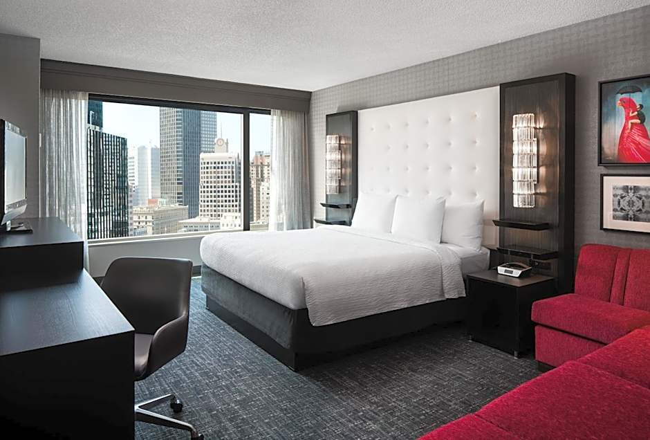At The Clancy, Autograph Collection, guests can choose from various types of rooms. These include guest rooms with 2 queen beds and city view, hypoallergenic rooms with 2 queen beds or a king bed, king rooms with city view, one-bedroom king suites with a sofa bed, and rooms with accessibility features. All rooms are non-smoking and have a room size of 355 sqft. Occupancy ranges from 2 adults and 1 child to 4 adults and 3 children, depending on the room type.