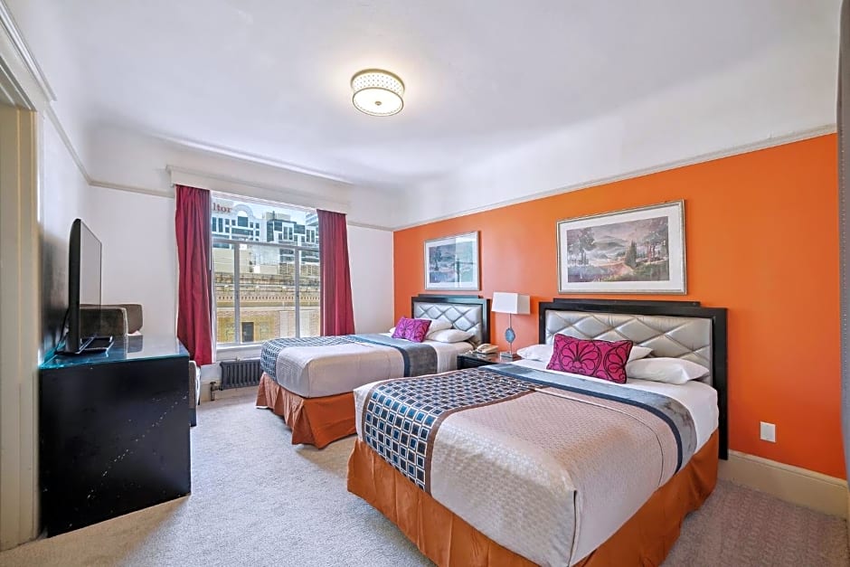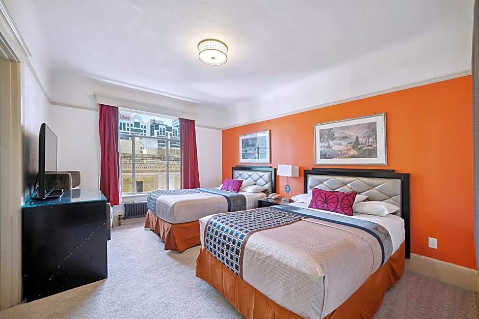 Rooms at the Union Square Plaza Hotel are designed for your comfort and convenience. Each non-smoking room is equipped with modern amenities, including a private bathtub that's perfect for unwinding after a day of exploring. The hotel also features an elevator for easy access, and a tour desk to help you plan your next excursion, whether it’s visiting Alcatraz Island or savoring famous sourdough bread at Fisherman’s Wharf.