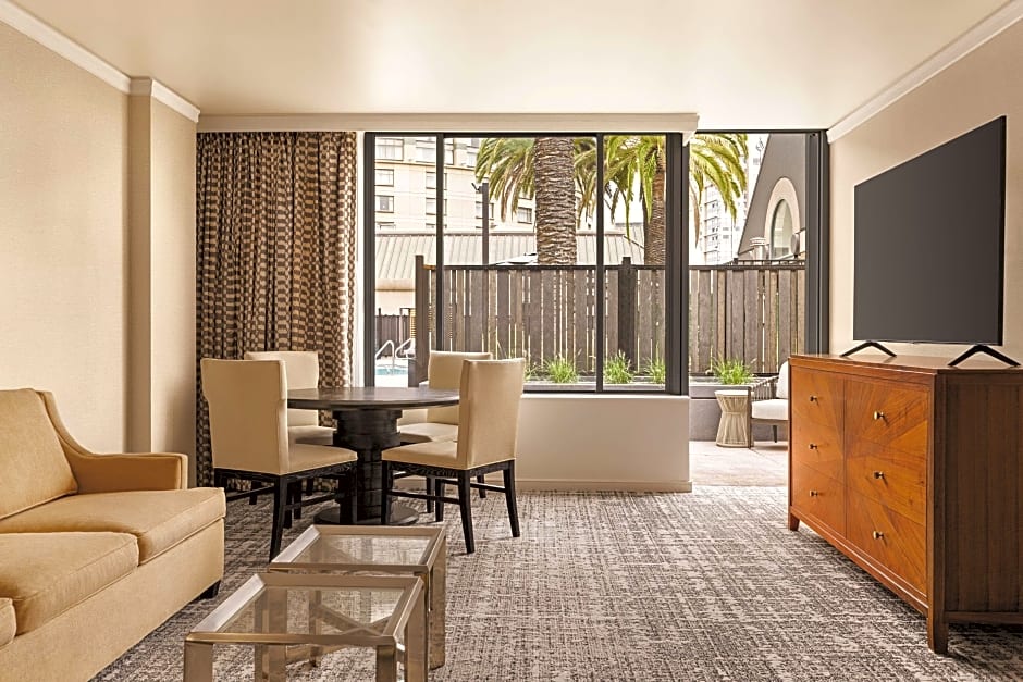 Diners can choose between Fountain Restaurant, a traditional American eatery, and AJI Bar and Robata, a modern spot blending American, Japanese, and Peruvian flavors. A bar on site invites after-sightseeing drinks, while the rooftop pool area serves as a sunny social hub by day and in the evenings. On-site dining options keep meals effortlessly aligned with exploring San Jose’s sights.