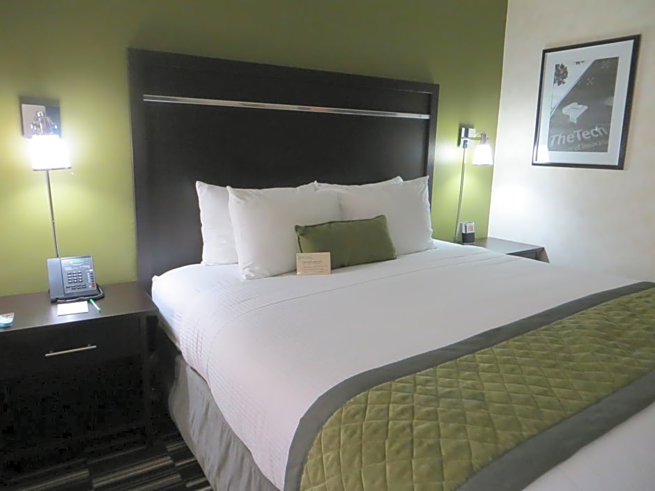 The Wyndham Garden San Jose Airport offers a variety of room types including suites, doubles, and quadruples. All rooms are non-smoking and range in size from 323 sqft to 355 sqft. The rooms accommodate between 2 and 4 adults, and some can accommodate up to 3 children. The beds in the rooms range from 1 King size bed to 2 Queen size beds or 2 Double beds.