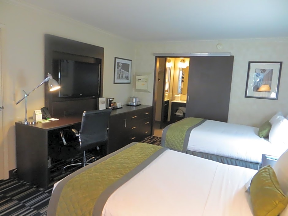 Experience our spacious Deluxe Queen Room with Courtyard View and enjoy the comfort of two queen beds in a non-smoking environment. Unwind with modern amenities like a flat-screen TV, microwave, and free WiFi.