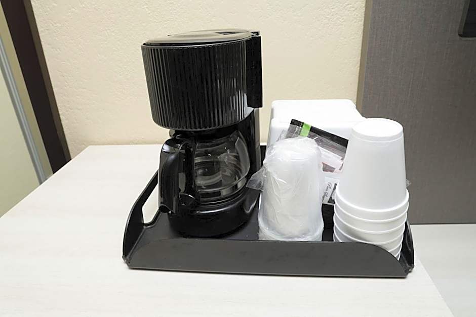 A small fridge, microwave, and tea and coffee-making facilities are provided in this room. A seating area with a cable TV is featured.