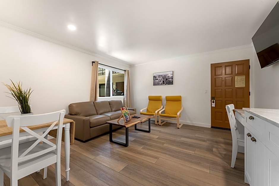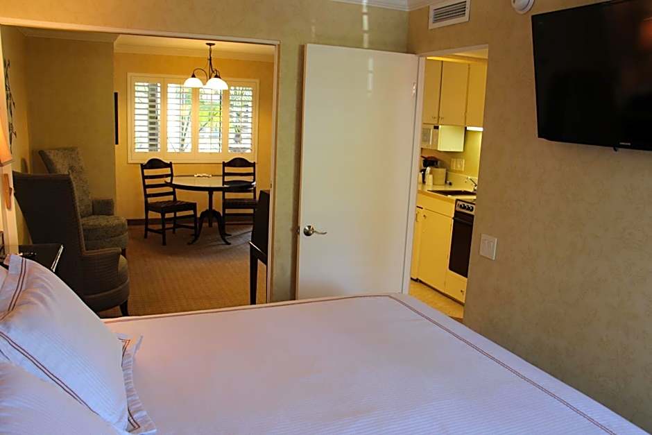 Featuring a separate seating area, this spacious suite provides a flat-screen cable TV and free WiFi. The décor combines hand-carved woods and soothing beach tones, reflecting the relaxed yet sophisticated Santa Barbara style. The private bathroom is appointed with distinctive slate accents.