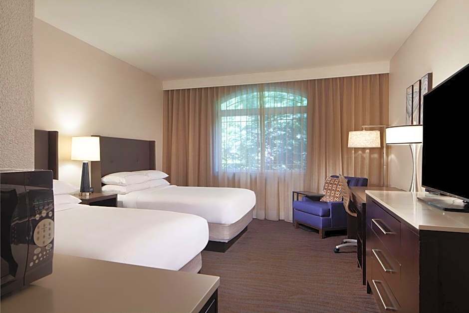 Forest views, complimentary WiFi, wet bar, refrigerator, microwave, 42-inch LCD TV Take in views of the tranquil redwood forests of the Santa Cruz Mountains in this beautiful room featuring 2 queen-sized Hilton Serenity beds. Check your emails with complimentary WiFi access, and watch an on-demand movie on the 42-inch LCD TV. This guest room includes our Hilton Serenity bed with allergen-free down comforter and pillows, elegantly striped sheets and duvet cover, plus a mattress set custom designed for added support and comfort.