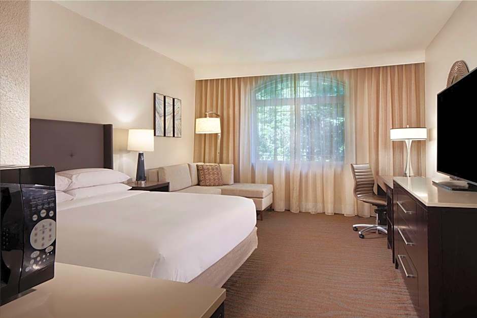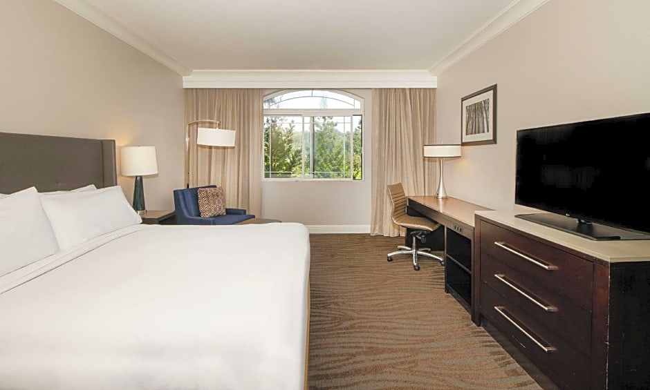 Forest views, complimentary WiFi, wet bar, refrigerator, microwave, 42-inch LCD TV Take in views of the tranquil redwood forests of the Santa Cruz Mountains in this beautiful guest room which features a king-sized Hilton Serenity bed. Check your emails with complimentary WiFi access, or watch an on-demand movie on the 42-inch LCD TV. This guest room includes our Hilton Serenity bed with allergen-free down comforter and pillows, elegantly striped sheets and duvet cover, plus a mattress set custom designed for added support and comfort.