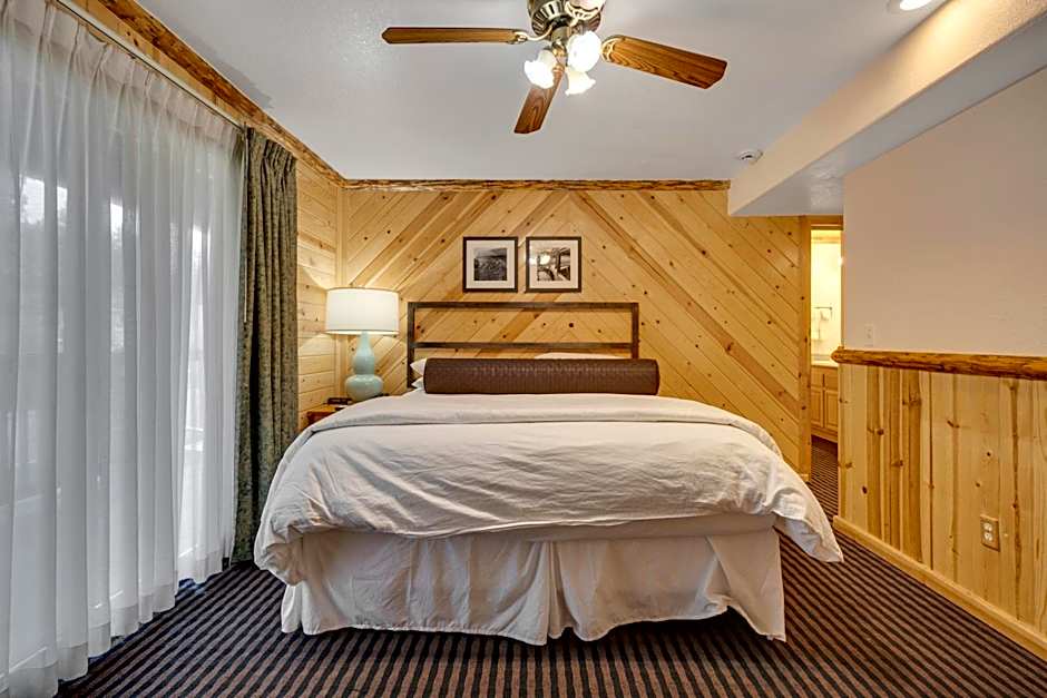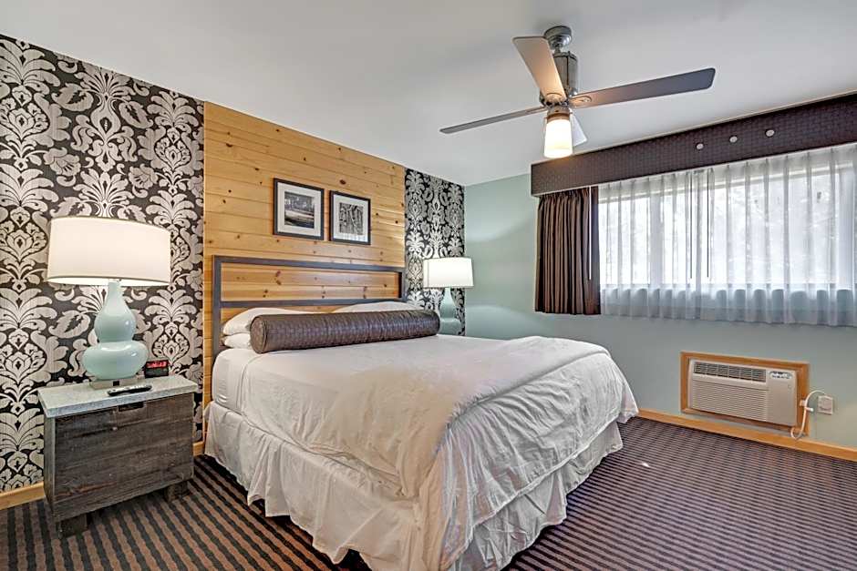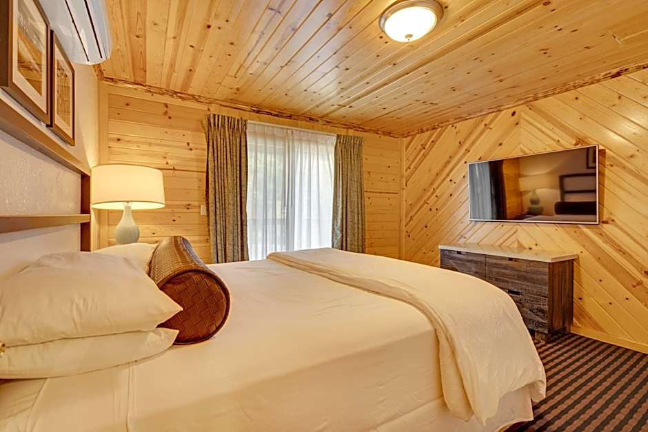 The staff was nice they sale firewood for the chimney. Also there is a pool table inside by the front desk. They have two jacuzzis outside in the pool area. The area is convenient because it’s surrounded by tourist attractions like the Gondola. The beds are comfortable. The vibes are like cabin vibes inside the rooms. If you stay in a studio with kitchen the hotel does provide with towels cups/plates/bowls refrigerator and oven to cook. They have a lot of available parking and it’s free.