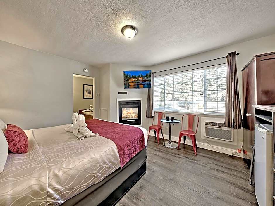 Room options include King Rooms, Rooms with Kitchenettes, Honeymoon Suites, and various Suite configurations. Some suites feature a Jetted Tub or Fireplace, and kitchen facilities are available in select rooms with a kitchen, kitchenette, and kitchenware. This mix makes it easy to tailor a Tahoe stay to a romantic escape, a family trip, or a cozy weekend retreat.