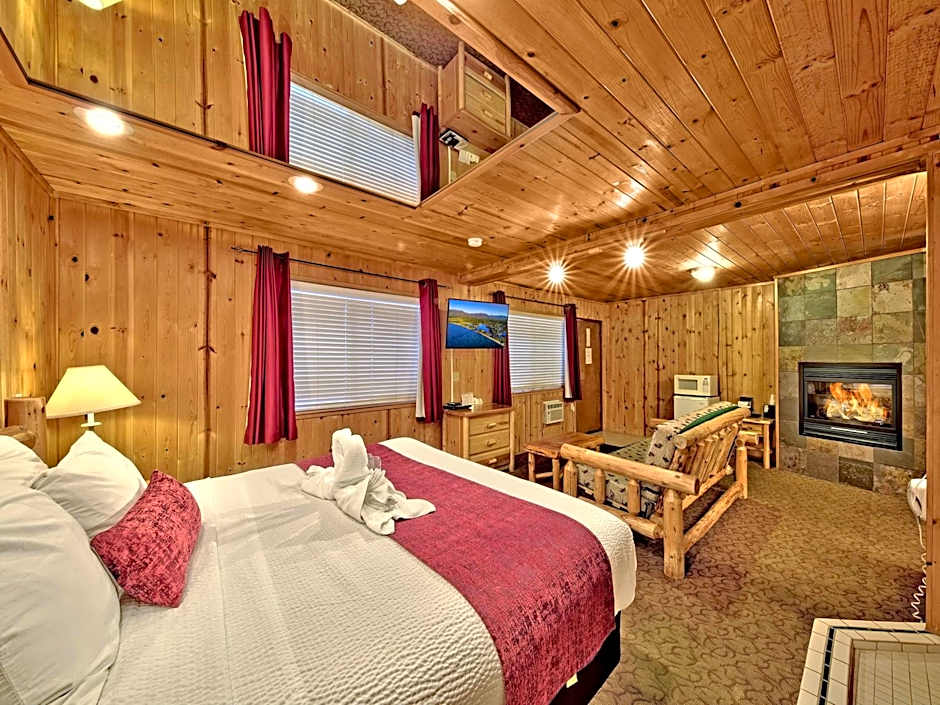 Featuring a spa bath and gas fireplace, this room includes a flat-screen TV with cable. Children are not permitted in this room.