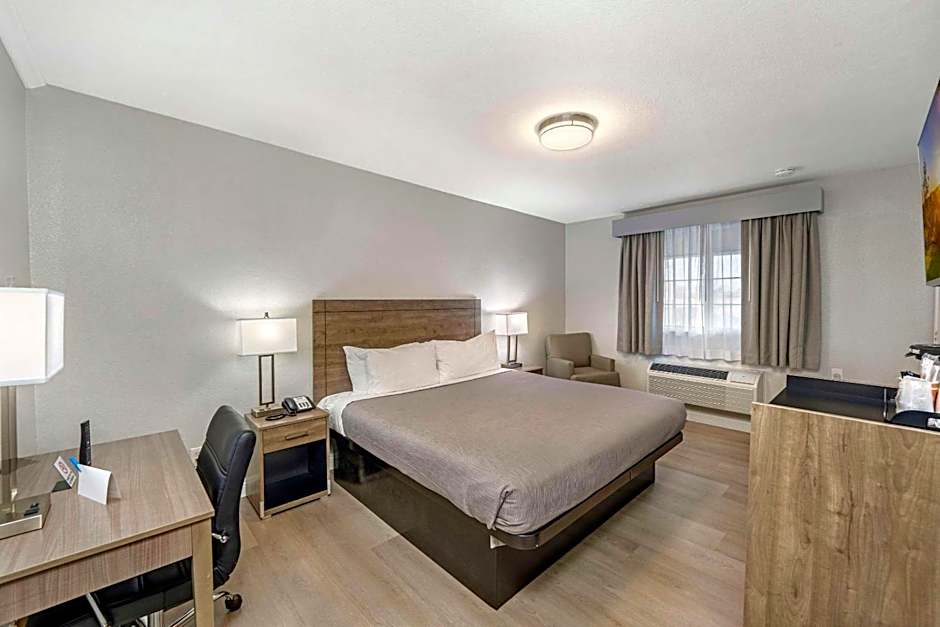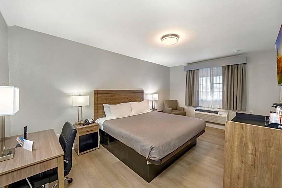 The Rodeway Inn Stockton Highway 99 offers a variety of room options. The Standard King Room is non-smoking and can accommodate 2 adults and 1 child. It features a king-size bed. The Double Room is accessible and allows smoking, with space for 2 adults and 1 child, featuring a double bed. The Double Room with Two Double Beds is non-smoking, accommodating 4 adults and 3 children, with two double beds.