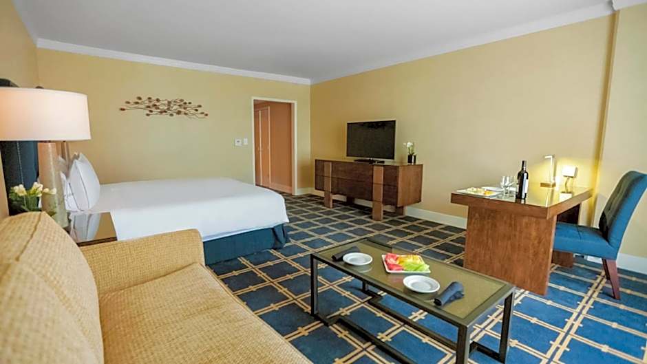 Offering free WiFi, this air-conditioned superior room features a full-size bathroom with granite counter-tops and vanity mirrors, an LCD TV, an iHome docking station, a mini-fridge and plush guest robes.