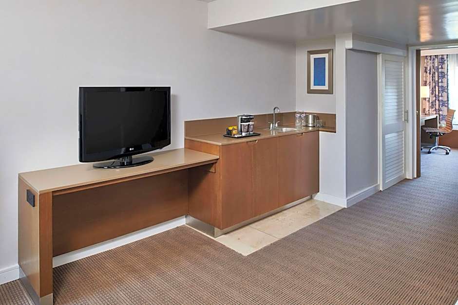 Suite features a separate living area, a refrigerator and a coffee maker.