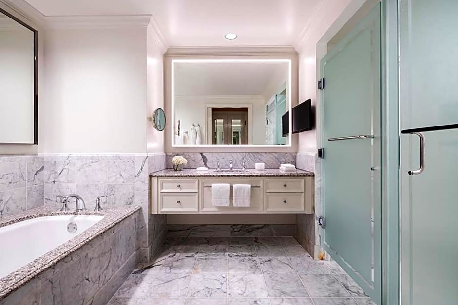 Featuring high ceilings and floor to ceiling windows, this room offers an private bathroom with a deep soaking tub and plush bathrobes. A 42" flat-screen TV is available in the bedroom and a 12" flat-screen TV is provided in the bathroom. Visual notification devices for incoming telephone calls, visual alarms from the internal security system and visual door bells are accessible in this room.