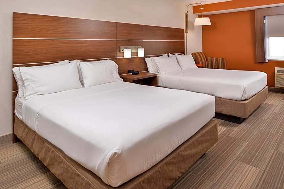 The Holiday Inn Express Westley offers a variety of room types including Queen Rooms with Two Queen Beds, King Rooms, and rooms with disability access. All rooms are non-smoking and have a room size of 183 sqft. The Queen Rooms with Two Queen Beds can accommodate 4 adults and 3 children, while the King Rooms and rooms with disability access can accommodate 2 adults and 1 child.