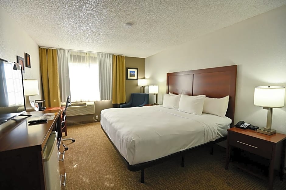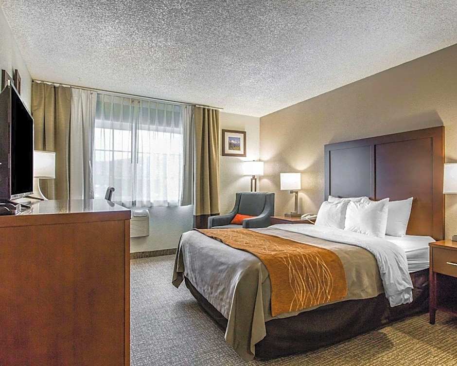 Comfort Inn Yreka I-5 offers a variety of rooms, including Queen Rooms with Two Queen Beds for families, King Rooms for two adults and one child, and King Suites for larger groups. Smoking is not allowed in any of the rooms. Bed sizes range from Queen to King, with room sizes varying between 301 sqft and 355 sqft.