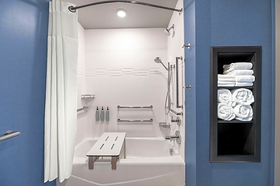 The location is so easy to get to, the facilities are brand new and well kept, breakfast was great with so much seating, and the room was perfect with space and a kitchen. Front desk staff were so nice and helpful!