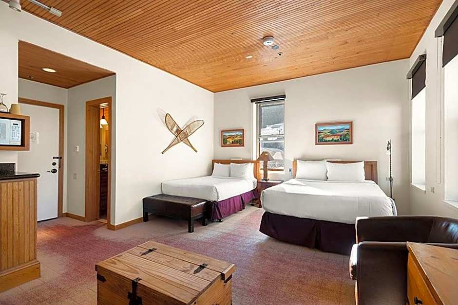 This Suite spans 398 square feet and accommodates 2 adults and 2 child, featuring one double bed and one queen-size bed. Smoking is not allowed, ensuring a clean, non-smoking environment. A compact yet comfortable layout provides modern comforts ready for a mountain town stay in Aspen.