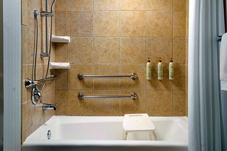Providing free toiletries, this suite includes a private bathroom with a walk-in shower, a bath and a hairdryer. This wheelchair accessible suite features air conditioning, a seating area with a flat-screen TV and a roll-in shower.