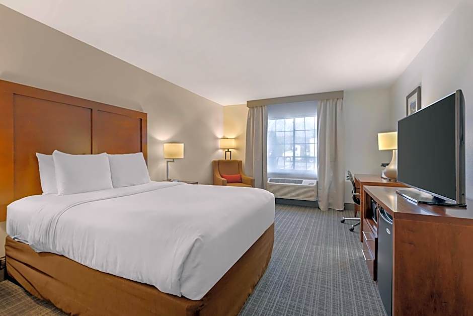 The types of rooms available at Comfort Inn & Suites Carbondale include King Suite, Queen Room, and King Room. The occupancy of these rooms ranges from 2 adults to 4 adults, with 1 to 3 children. Smoking is not allowed in any of the rooms. The bed sizes vary between King and Queen, with some rooms offering two Queen beds. The room sizes are all 301 square feet.