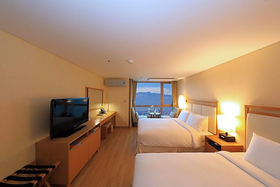The front desk staff was so friendly and very helpful which is always a plus. The breakfast was good. Enjoyed it every morning of our stay. The view wasn't the best thought I'd see mountains, but a good location. Enjoyed our stay!