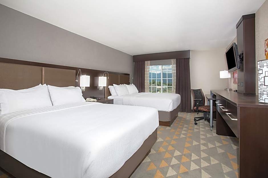 The Holiday Inn Colorado Springs - Airport offers a variety of rooms including suites and double rooms. The rooms can accommodate different numbers of guests, with some rooms accommodating up to 4 adults and 3 children. Smoking is not allowed in any of the rooms. Bed sizes range from queen to king size. Room sizes are generally 205 sqft, with the exception of the Queen Room with Two Queen Beds - Mobility Access Tub/Non-Smoking which is 248 sqft.