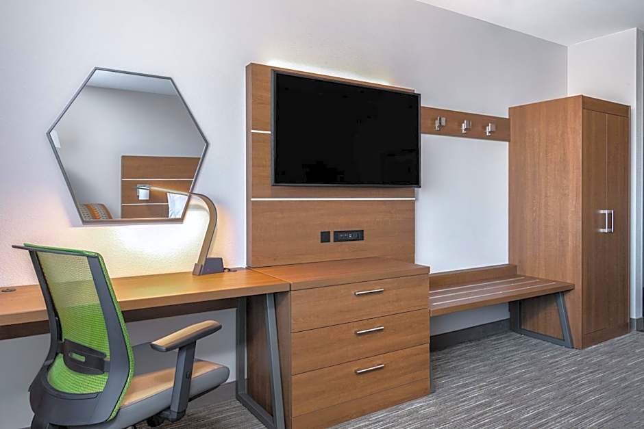 The Holiday Inn Express & Suites - Colorado Springs South I-25 offers a variety of room types including queen rooms with two queen beds, king rooms, and suites. All rooms are non-smoking and have a room size of 205 sqft. The occupancy ranges from 2 adults and 1 child to 4 adults and 3 children depending on the room type.