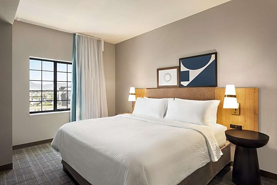 Staybridge Suites - Colorado Springs NE Powers offers a variety of room types including one-bedroom suites and studio suites. All rooms are non-smoking. The rooms accommodate either 4 or 6 adults, with bed options including queen or king size beds. The accessible rooms have mobility accessible tubs.