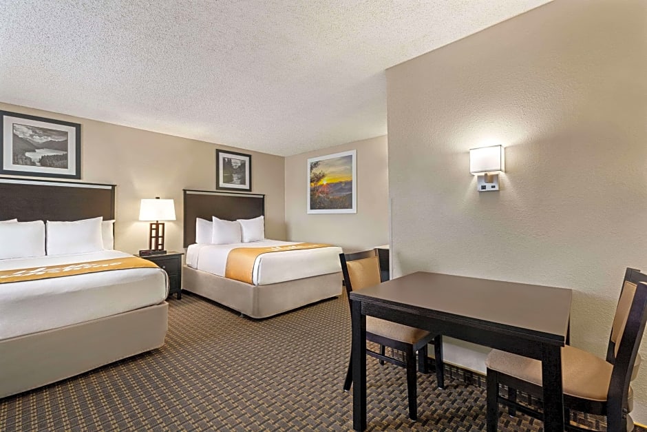 Rooms at the Days Inn by Wyndham Cortez include King Rooms, Two-Room Suites with Two Double Beds and One Queen Bed, Standard King Rooms, Two-Room Suites with One King Bed and One Queen Bed, King Suites with Sofa Bed, Queen Rooms, Queen Rooms with One Queen Bed and One Double Bed, Queen Rooms with Two Queen Beds, and Double Rooms with Two Double Beds. Smoking is allowed in some rooms but not others. The bed sizes vary, with options including King, Queen, and Double beds. Occupancy ranges from 2 adults and 1 child to 6 adults and 3 children. Room sizes are all 291 sqft, except for the Two-Room Suite with Two Double Beds and One Queen Bed at 538 sqft.