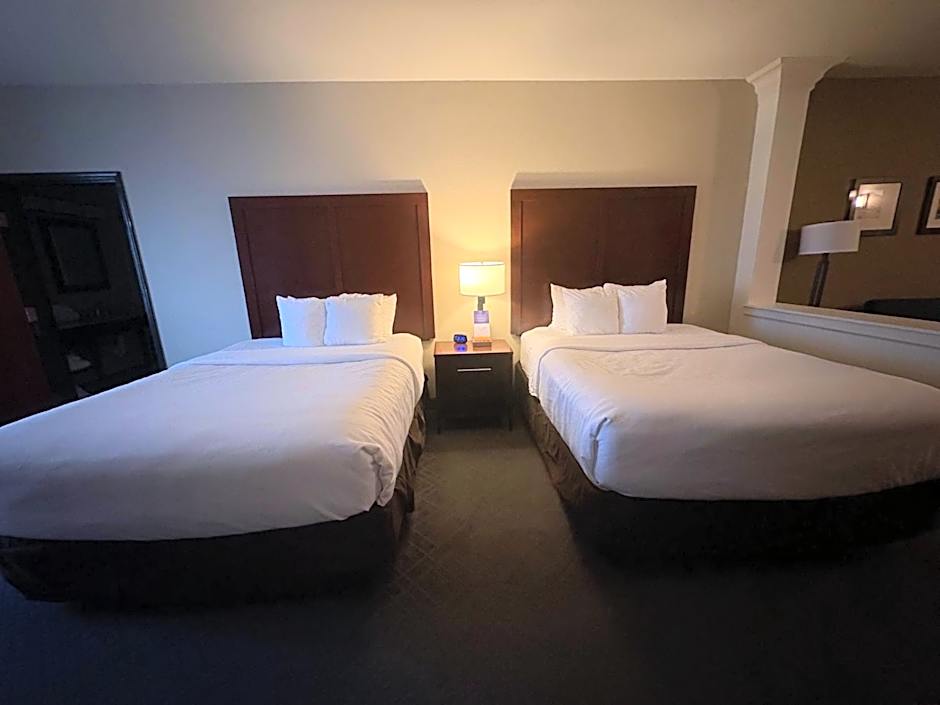 Sleep setups range from Queen-only suites to configurations that pair two queens with a sofa bed. Notable options include Suite, Queen, which features a queen bed; Suite, 2 Queen, Sofa Bed, with two queen beds plus a sofa bed; Suite, Sofa Bed, Jetted Tub, offering a sofa bed and a private tub; and Suite, WhirlPool, a king-bed layout with a sofa bed. Some layouts pair a king bed with a sofa bed, while others feature two queens for added flexibility.