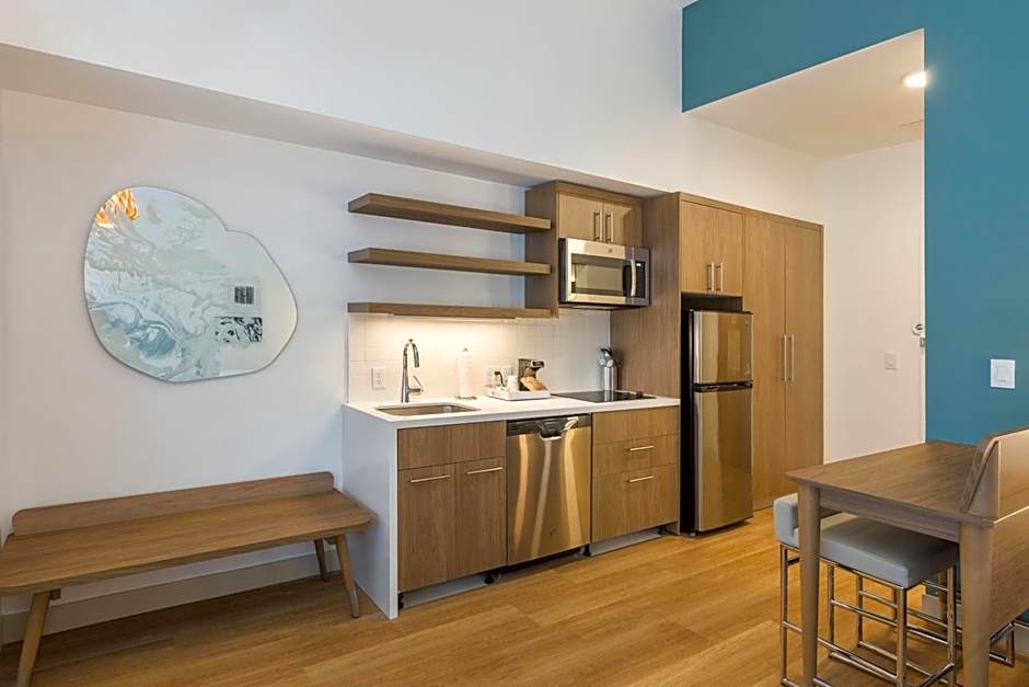 Experience comfort and convenience in one of the hotel's stylish and well-equipped rooms. The spacious and inviting guest rooms feature a comfortable king-size bed, perfect for a good night's sleep. The 1 Bedroom Suite offers even more space, accommodating up to four adults and three children with a queen-size bed and a sofa bed. For larger groups, the Studio with Two Queen Beds and Sofa Bed is a perfect choice, comfortably accommodating up to six adults and five children. Rest assured that all rooms are smoke-free for a refreshing and clean environment during your stay. So, whether you're traveling solo, with a partner, or with a big group, the Element Denver International Airport has the perfect room to suit your needs.