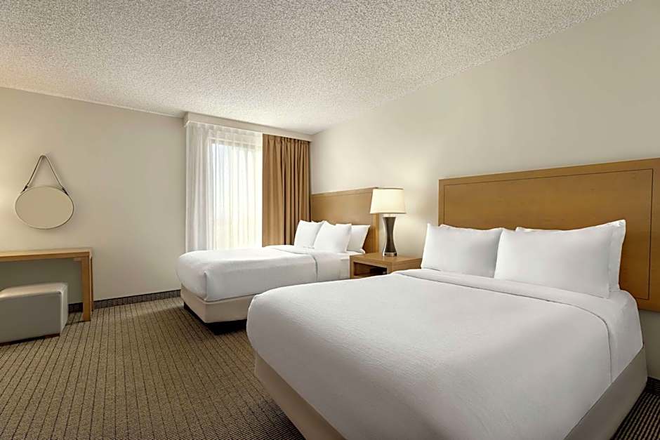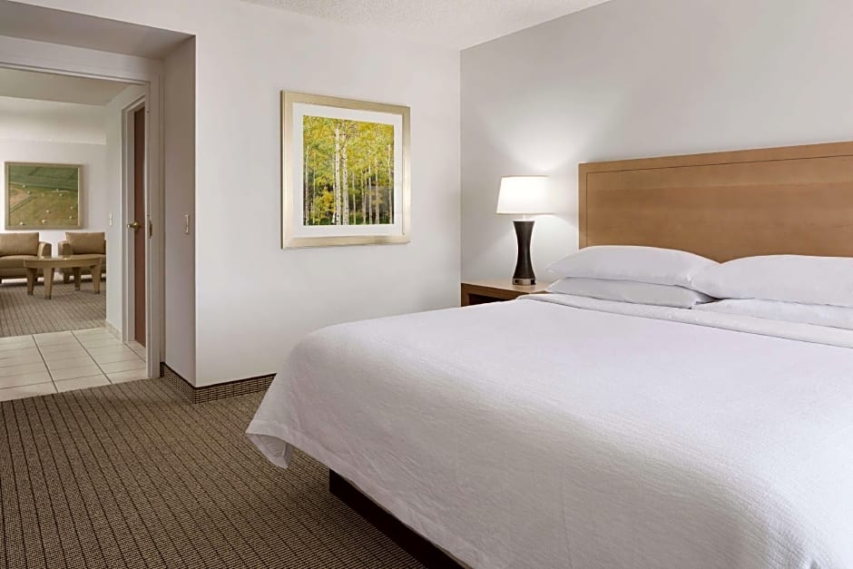 Living room, sofa bed, two TVs, wet bar, refrigerator, microwave, WiFi, work space Enjoy a comfortable stay in this two-room suite with a bedroom featuring two double beds and a separate living space with a sofa bed. Catch up on work with the dining/work table and stay in touch with WiFi access. Home-like amenities include a refrigerator, a microwave, a coffeemaker and a wet bar area. The suite also features two TVs with movies and premium channels. Some suites offer views of the Rocky Mountains and Denver International Airport.