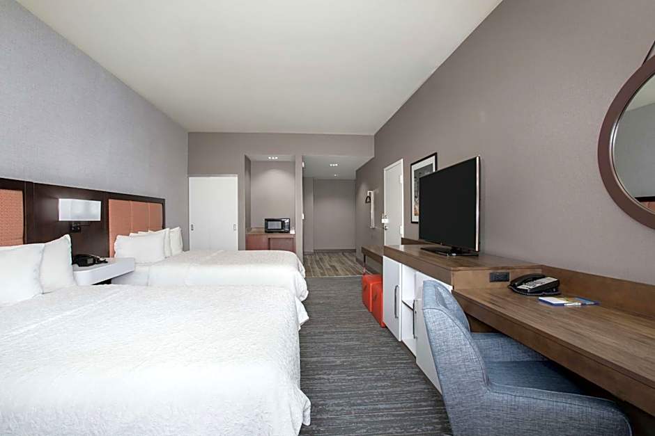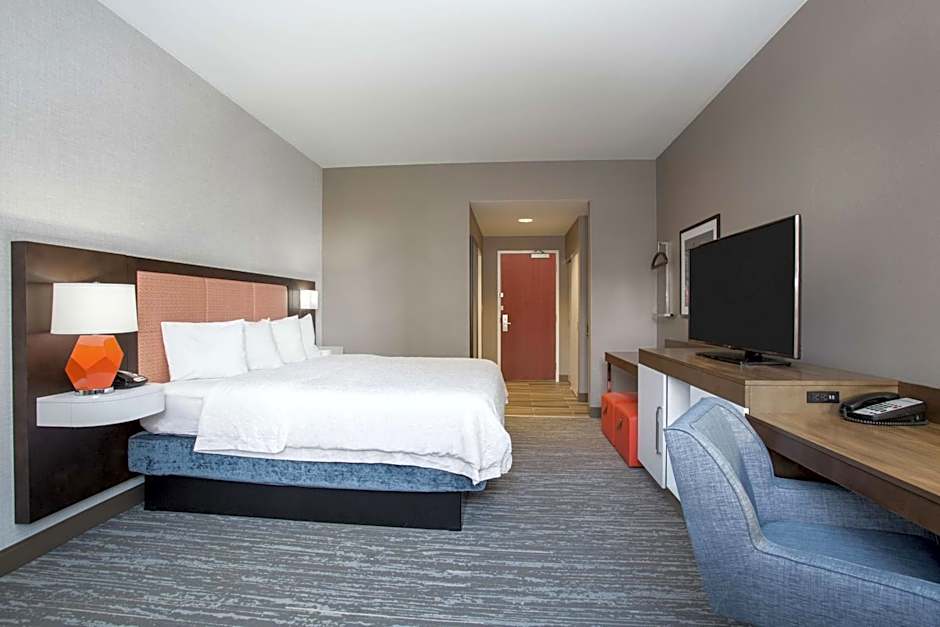 37-inch HDTV, free WiFi, large work desk, refrigerator, microwave, coffeemaker This spacious two room non-smoking suite contains one king-sized clean and fresh Hampton bed® and a separate living room area with a plush sofa and recliner or lounge chair. Relax in the seating area and watch a movie on the 37-inch HDTV or work at the comfortable desk and stay connected with free WiFi access. Enjoy the convenience of having a refrigerator, microwave and a coffeemaker in your suite. Refresh in the stylish bathroom which provides fluffy towels, a shower with WaterPik® showerhead and curved shower rod for extra light and space in the shower.