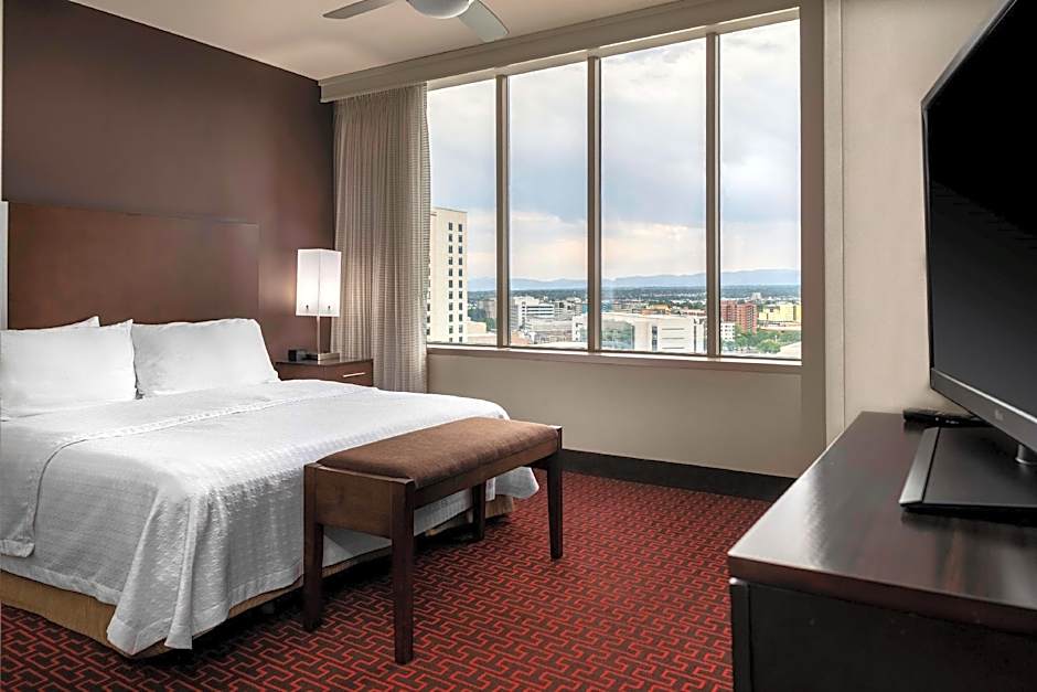 Homewood Suites- Denver Downtown Convention Center offers a variety of rooms including Studios and Suites. The rooms have a size ranging from 452 sqft to 549 sqft. All rooms are non-smoking and equipped with 1 King size bed, some with an additional sofa bed. The rooms can accommodate up to 4 adults and 3 children. Some rooms also offer a view of the mountains while others have disability access.