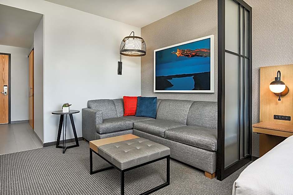 Decompress in this 347-square-foot space with a king bed, a work desk with ergonomic chair, and a Cozy Corner with sofa-sleeper.