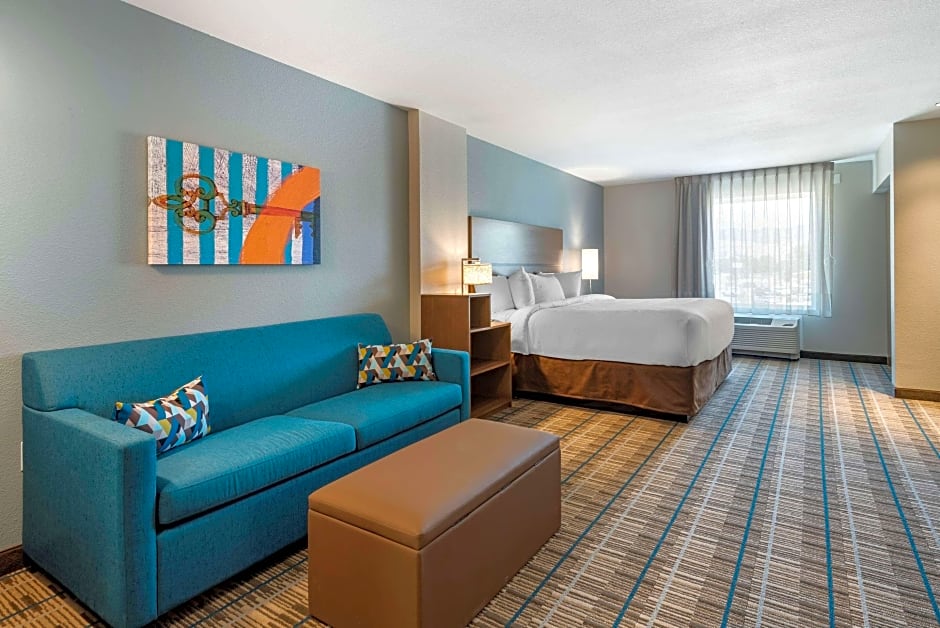 1 King Bed, Efficiency, Suite, Nonsmoking, Accessible includes a king-size bed 150-183 width and is Wheelchair-accessible.