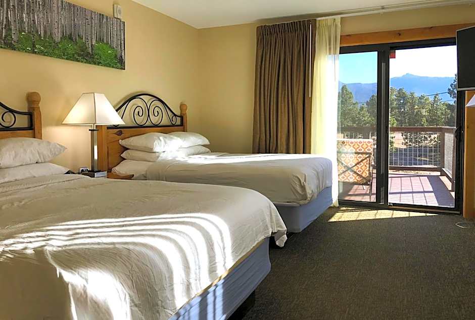 Set against the rugged beauty of Estes Park, this value-focused lodge blends rustic charm with practical comforts. A seasonal outdoor pool invites a refreshing break, its waters heated and the pool offering mountain views. Private entrances and terraces with scenic mountain vistas add a touch of seclusion to every stay.