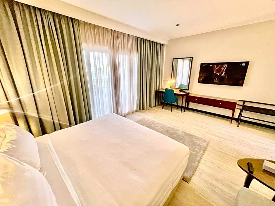 The hotel offers a King Studio with Sofa Bed, a Two-Bedroom Suite, a One-Bedroom King Suite with Mountain View, and a One-Bedroom King Corner Suite with Mountain View. All rooms are non-smoking and can accommodate 2 adults and 1 child. The King Studio and the One-Bedroom Suites have a room size of 301 sqft, while the Two-Bedroom Suite has a slightly larger room size of 452 sqft. All rooms feature a King size bed, with additional sofa beds available in some rooms.