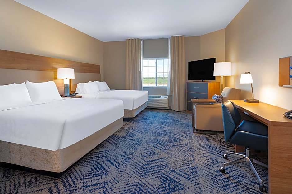 The Candlewood Suites Grand Junction offers a variety of rooms including Queen Studios (non-smoking) with a Queen-size bed, Double Studios with Two Double Beds (non-smoking), One-Bedroom Queen Suites (non-smoking) with a sofa bed and queen-size bed, and a Standard Double Room (non-smoking) with 2 double beds and a queen-size bed. There are also accessible options available including disability access rooms and rooms with roll-in showers. All rooms have a maximum occupancy of either 2 adults or 4 adults (with additional children).