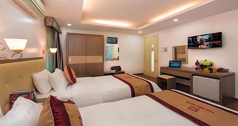 The air-conditioner was very noisy and close to one of the beds. No bedside table on 2 sides.