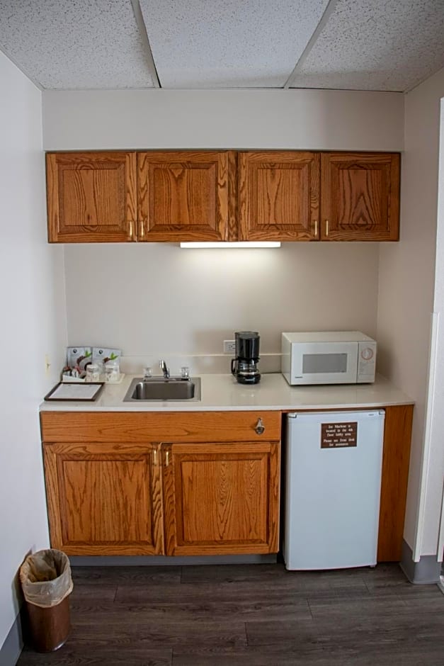 This air-conditioned room with vaulted ceilings features a seating area with a flat-screen cable TV, a microwave and a small refrigerator. An private bathroom with a hairdryer is also included.