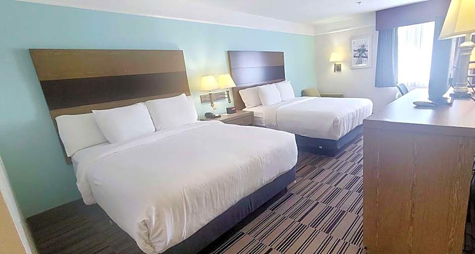 The hotel offers different types of rooms including Queen Rooms with Two Queen Beds and Standard King Rooms. All rooms are non-smoking and have a size of 301 sqft. The Queen Rooms can accommodate 2 adults and 2 children, while the King Rooms can accommodate 2 adults and 1 child. The beds in the Queen Rooms are 2 x Queen size beds, while the beds in the King Rooms are 1 x King size bed. Additionally, there is a King Room with a kitchen available.