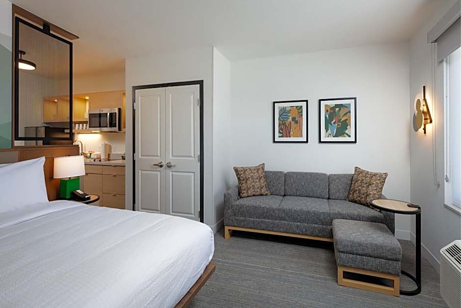 The suite is the perfect size. Liked that it was situated in the corner with natural light from two sides. Great storage including drawers in the bathroom and closet organizer. The staff were ALL very friendly and accomodating, especially the front desk staff, Bonnie and Mia. I'm a rather picky eater and usually not fond of hotel breakfast bars, but found the selection very tasty and with healthy options. The location is within easy walking distance to a grocery store and restaurants.