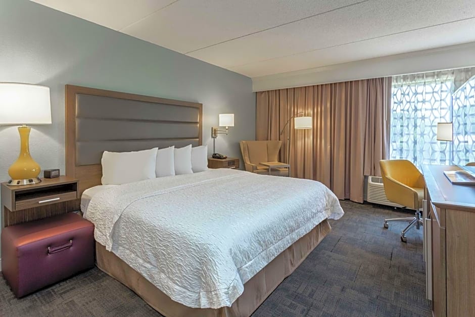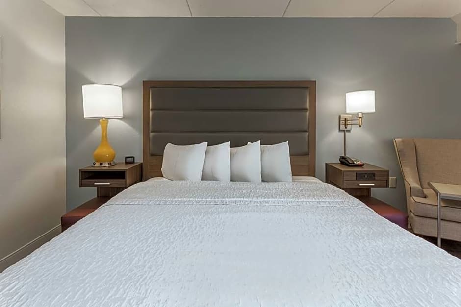 This mobility and hearing accessible, non-smoking room features one king -sized bed , and an accessible roll-in shower. The room also has a visual alarm and notification devices for the doorbell or door knock and incoming phone calls. The room features comfortable soft seating, a HDTV, and easy to operate alarm clock/radio. Free WiFi will help you stay connected while on the road. If you prefer not to work at the desk, you can use the convenient lapdesk instead. You'll also enjoy the convenience of having a coffeemaker with tea service and iron/ironing board in your room. Any corresponding photo may not reflect the specific accessible room type or room feature.