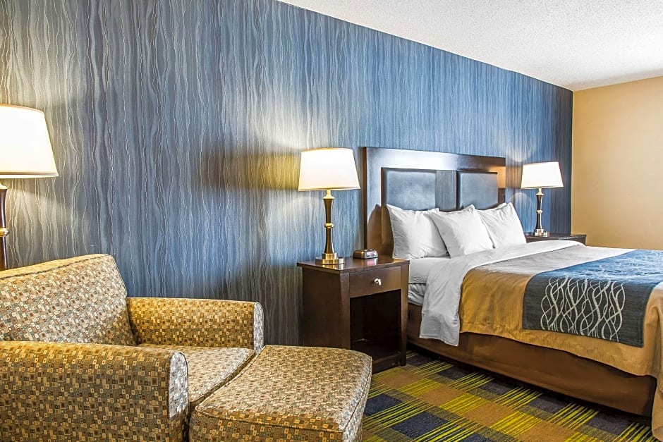 The Comfort Inn & Suites hotel offers various types of rooms. These include suites, business king rooms, accessible/non-smoking rooms, and rooms with queen or king size beds. All rooms have non-smoking policies and range in size from 334 sqft to 377 sqft. The occupancy ranges from 2 adults and 1 child to 4 adults and 3 children. Some rooms also feature sofa beds in addition to the main bed.