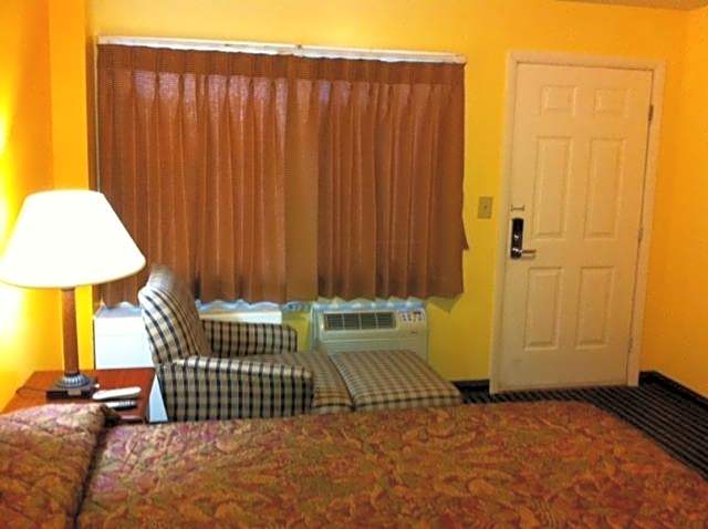 Okay, what I liked the most was the price. The room was quite clean, neat and everything was operational. It had a small frig and microwave. There is pizza delivery service. And yummy! WiFi worked. Single serve shampoo and soap. (No coffee maker for those that need the morning fix) But I drink cold Pepsi so I was good. And when hubby travels he takes his little one along. Pillows were good. The towels were awesome. Not huge but super fluffy and great for during off. No stains.