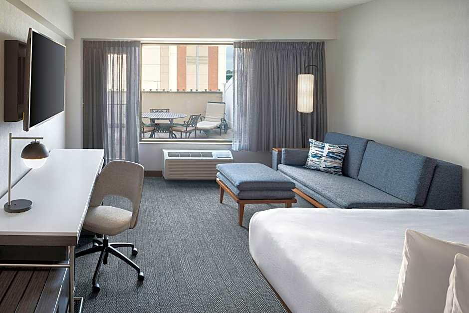 The Courtyard by Marriott Stamford Downtown offers King Rooms with Sofa Beds and Queen Rooms with Two Queen Beds. Both room types have a size of 344 sqft and do not allow smoking. The King Room with Sofa Bed has 1 King size bed and 1 Sofa Bed and can accommodate 4 adults and 3 children. The Queen Room with Two Queen Beds has 1 Queen size bed and can also accommodate 4 adults and 3 children.