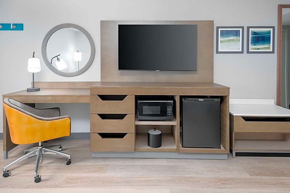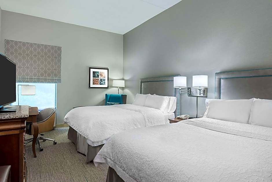 Sofa bed, 37-inch HDTV, work desk, coffeemaker, free WiFi Enjoy a restful stay in this comfortable room with a clean and fresh Hampton bed®, a sofa bed and a 37-inch TV with HD channels. This room also features a large work desk, and a coffeemaker. Free WiFi will help you stay connected when on the road. The bathroom contains plush towels and a shower featuring a curved shower rod for added space and light.